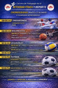 La carrera de Pedagogía de la Actividad Física y Deportes participó con entusiasmo en la inauguración de las IV Olimpiadas Interinstitucionales, acompañados de la belleza y elegancia de nuestra Srta. Madrina, la alegría y energía de nuestra mascota, y la unión de las y los estudiantes que hoy nos representan con orgullo .